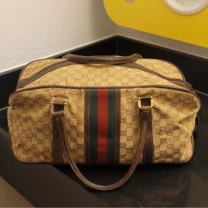 Gucci Gg canvas Sherry Ophidia Vintage boston Doctor Weekend Bag Tote.