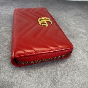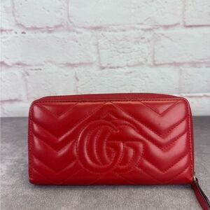 Authentic Gucci Gg Marmont Quilted Accordion Red Wallet