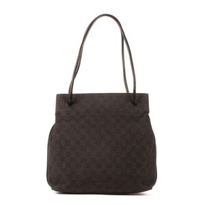 Gucci Shoulder Bag Gifford Tote in Dark Brown Monogrammed Denim Canvas and Black Metal hardware. The product is in Excellent Condition (A).