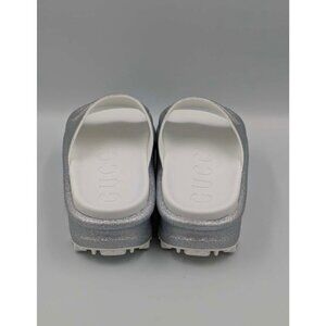 Gucci Glitter Rubber Interlocking G Platform Sandals Silver EU40