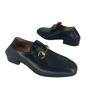 Gucci Quentin Black Goatskin Horsebit Convertible Heel Loafers Size 38