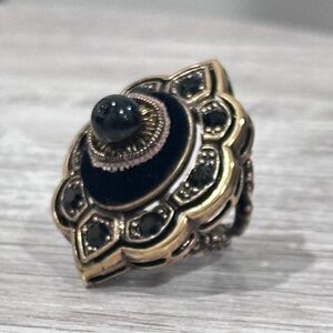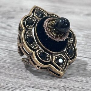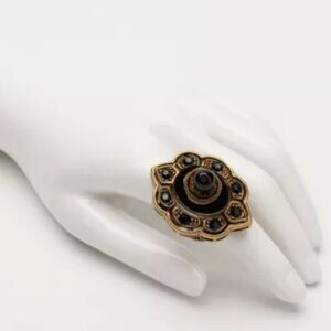 Authentic Gucci Gold Black Crystals, Velvet and Resin Cushion Cocktail Ring.