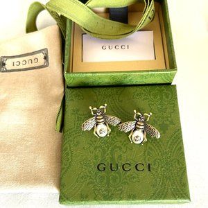 Gucci Gold Brass Bumble Bee Stud Earrings Gucci Logo