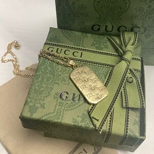 Beautiful Gucci Gold Tag Pendant with classic GG and bee design.