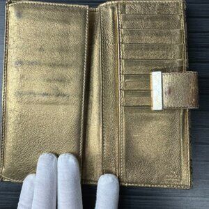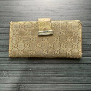 Gucci Gold GG Crystal Canvas and Leather Continental Wallet Authentic|Used