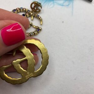 Gucci Gold GG Marmont Colorful Crystals Dangle Earrings are the epitome of show-stopping statement earrings. Adorned with colorful crystals, they're perfect for adding a touch of glamour to any outfit, whether it's day or night
