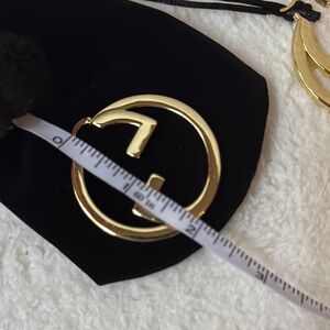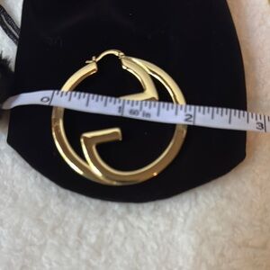 I was gifted these. Like new too heavy for me. These elegant Gucci earrings showcase a polished gold finish and the iconic interlocking 'G' motif. Designed as open hoops, they offer a minimalist yet sophisticated look, perfect for elevating any outfit. No box never worn