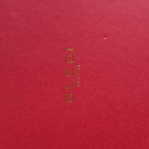 Stylish Gucci compact with gold pattern. Iconic design in a sleek finish.
