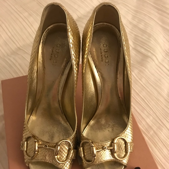Gucci Gold Python Peep Toe