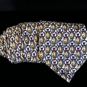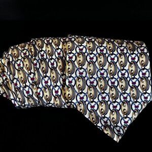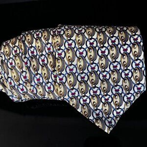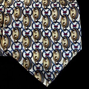 Gucci Gold Silk Tie Link Chain EUC Neckwear White Blue Preppy Statement