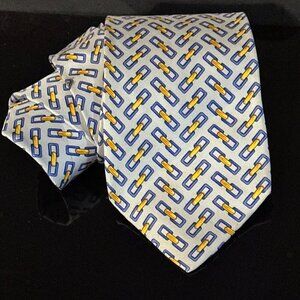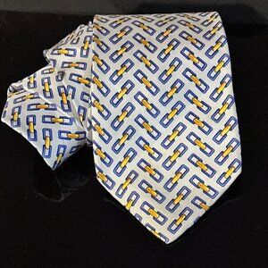 Gucci Gold Silk Tie Link Chain EUC Neckwear White Blue Preppy Statement Formal