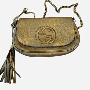 Gucci Gold SoHo Crossbody Bag with Chain Strap and Tassel
