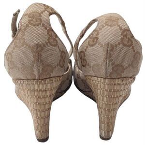 Gucci Gold Wedge Horsebit Espadrille Sandal Carolina Platform Beige 6.5B.