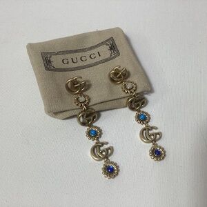 Gucci Gold and Blue Stone GG Vintage Earrings