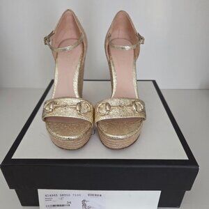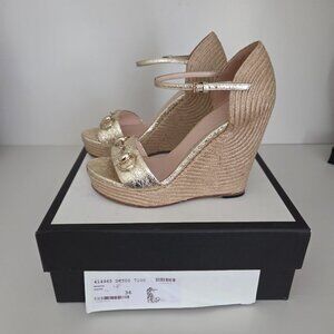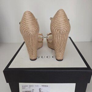 Stunning Gucci Carolina Platform Espardrille Wedges in EXCELLENT condition! The only part of the shoe that shoes any wear are the soles. Only worn 3-4 times. Comes with original box and dust bags.