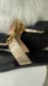 Chic Gucci sandals with gold straps and a white textured design. Stylish and versatile.