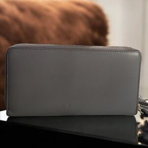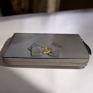 Elegant gray wallet. Features a stylish bow with Gucci logo. Perfect for any occasion. Has 2 faint pen marks on back but not noticeable. Has several card slots! Cute π₯°
