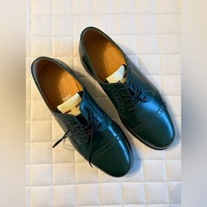 Gucci Green Leather Derby Shoes with Brogue Detailing