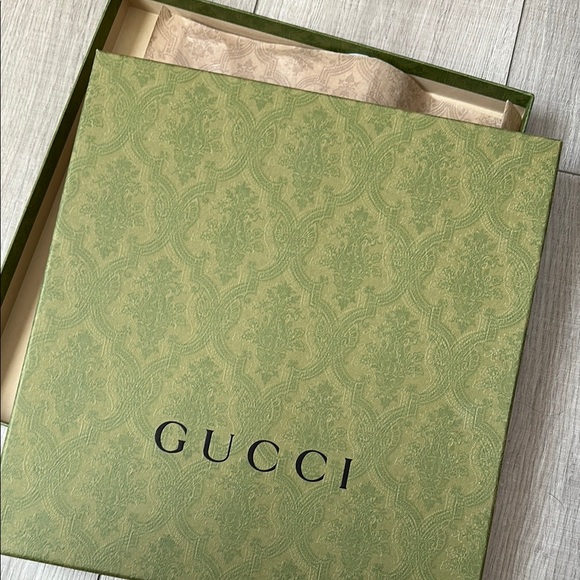 Elegant scarf Gucci box with a green pattern. Perfect for storage or gifting.(box only)