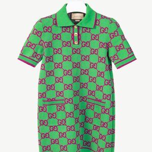 Gucci Green & Purple GG Monogram-Jacquard Polo Mini Dress