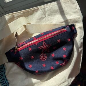 Gucci Kids Multicolor Waist / Belt / Bum Bag, Navy with Red Stars and wide white strap. Like new condition.