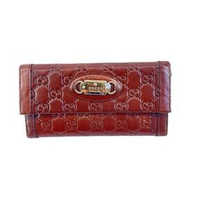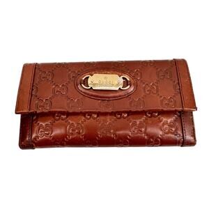 Gucci Guccissima Brown Leather Continental Wallet Gold Logo Plate Vintage