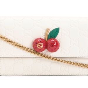 Gucci Guccissima Cherry accent Wallet on chain, mini crossbody white leather