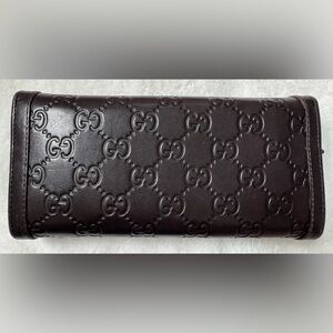 Gucci Guccissima Dark Chocolate Leather Continental Embossed GG Long Wallet