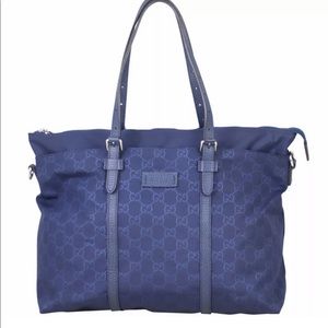 Gucci Zip Top Guccissima Navy Blue Detachable Strap GG Nylon Tote Handbag