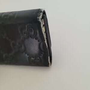 Gucci Guccissima Key Case Holder Wallet Case Leather Small Unisex Black Trifold