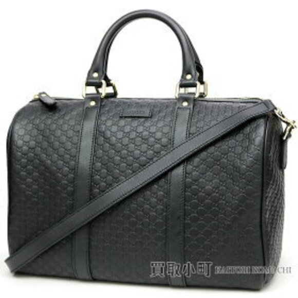 Gucci Guccissima Leather Boston Bag Black GG Calfskin shoulder handbag