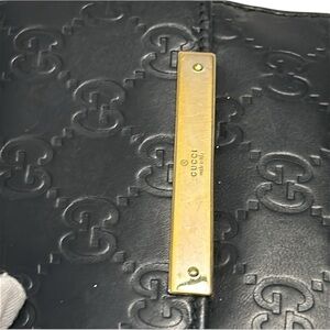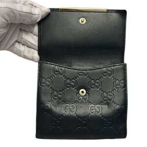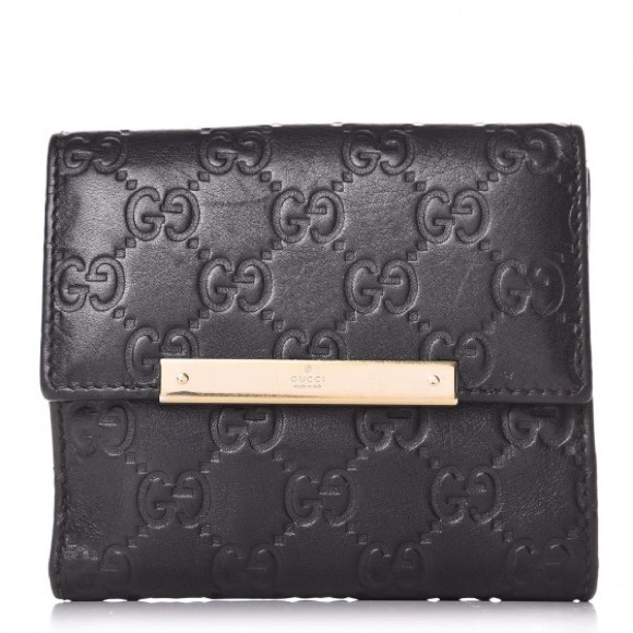 Gucci Guccissima Metal Bar French Flap Black Leather Wallet in VGUC