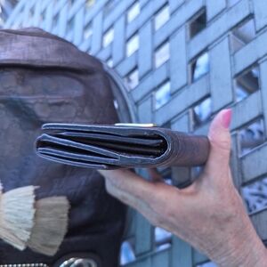 This Gucci shoulder bag in classic brown features a textured leather finish, offering a sophisticated yet casual style. The medium-sized bag is designed with a slouchy silhouette and short handles, complemented by gold-toned hardware for a touch of elegance. Ideal for everyday use, it combines luxury with practicality. slight minor rubs on corners. Hardly noticeable. 13L x 11H x 5D. 6 inch drop rolled handles. Small very light spot in the interior. see pic #4. Wallet has one slight corner rub again hardly noticeable. overall, bag and wallet is in excellent condition.