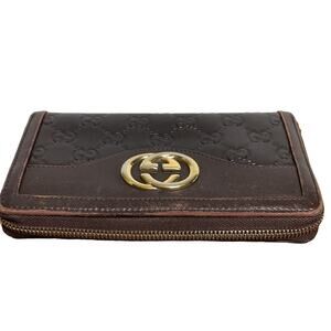 Auth Gucci Zip Purse Interlocking Long Wallet GG Brown Leather Unisex