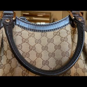 Gucci handbag purchased in 2014. Never used. Has been in protective bag. Includes: handbag itself, protective bag, original receipt of purchase, cleaning cloth, small patch, and authentication code/tag. Original price $990 (not including tax).
