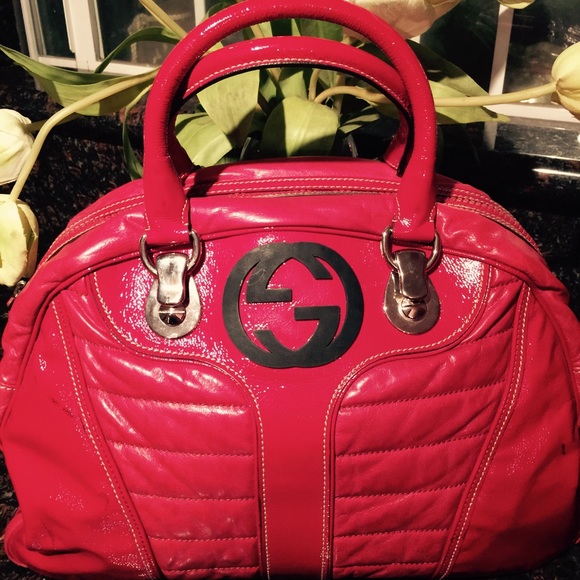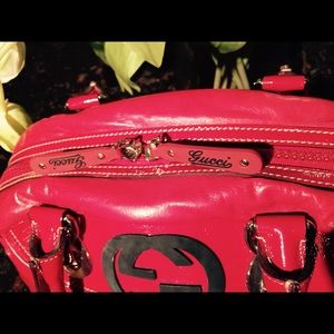 Gucci in Hot red and Black Logo . It s much more Red in person . Excellent Condition with normal wears from being in storage!! 100% Authentic!! 😊