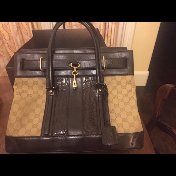 Limited Edition, Vintage, Authentic Gucci with Crocodile Accents, Investment Quality, Satchel Handbag. Lock with hidden key. Mint condition- never used. No damage.