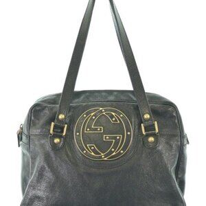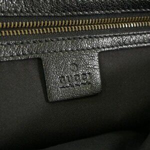 This is an authentic Gucci Marmont handbag in black. The bag features a distinctive GG logo emblem on the front, as well as gold-tone hardware and a structured, trapezoidal silhouette.