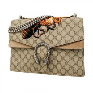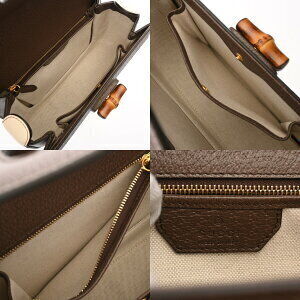 Gucci Handbag Bamboo Beige Ebony Brown GG Supreme Leather