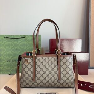 Gucci Handbag Bamboo Beige Ebony Brown GG Supreme Leather Includes a Certificate of Authenticity!