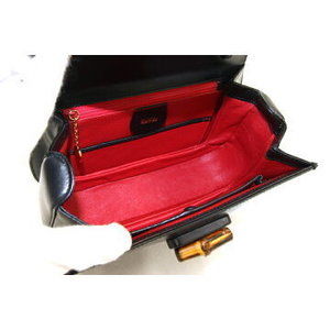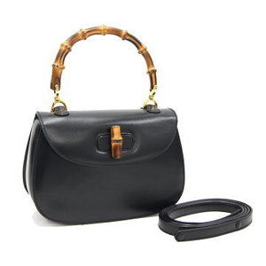 Gucci Handbag Bamboo Black Leather Crossbody Rare