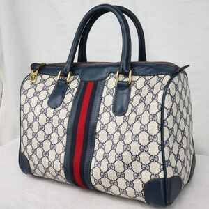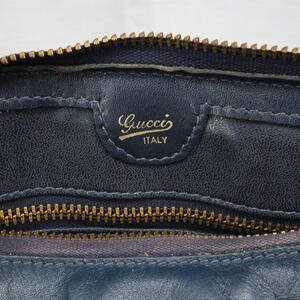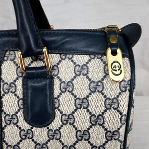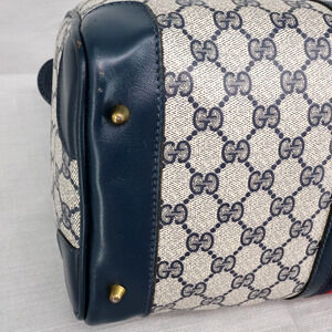 Gucci Handbag Womens Gray Blue Leather Trim Zip Boston Bag Sherry Line Vintage
