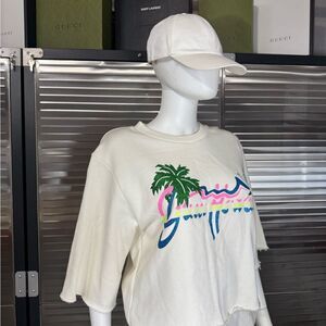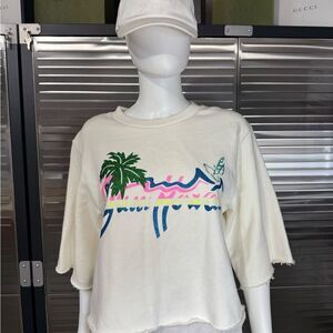 Authentic Gucci Hawaii Palm Tree Printed Crop Sweater Small