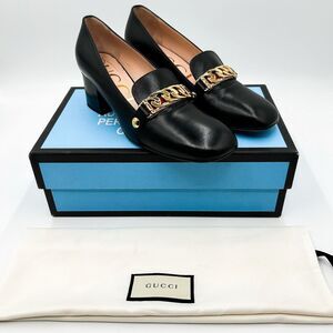 Gucci Heels Sylvie Pumps Black Loafers 55 Block Web Heel Chain 39.5, US 9.5