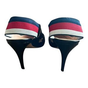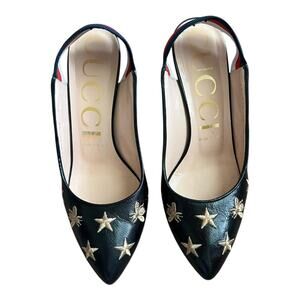 Gucci Heels Sylvie Web Bee Accent Leather Slip On Slingback Round Toe Pumps Shoe