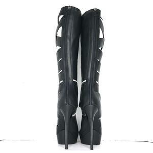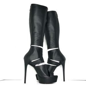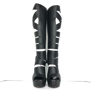 Gucci Helena Babylon Cutout Knee High Black Leather Platform Boots 37.5