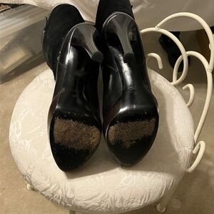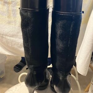 Gucci high heeled black boots with leather and fur exterior. Size 9B