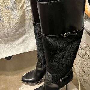 Gucci High Heeled Leather & Fur Boots- Size 9B