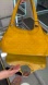 Yellow leather with Guccisima embossed pattern, gold-tone hardware, dual flat shoulder handles, leather trim, snap closure, brown canvas interior, single interior zipper