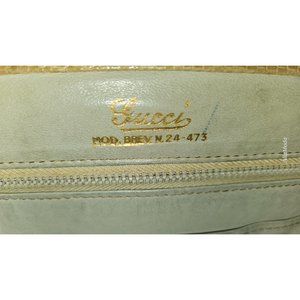 Inside, there are three compartments- the compartment in the center has a gold hinged snap top and is surrounded by two, open top compartments. Inside of the center compartment are a few pockets to keep you organized. The lining is made of matching leather and is very clean. It has a gold embossed stamp that reads 'Gucci, made in Italy mod breve n.24- 475' and predates serial #s. This is a gorgeous purse from the 1960's that is in mint condition. Don't miss out!